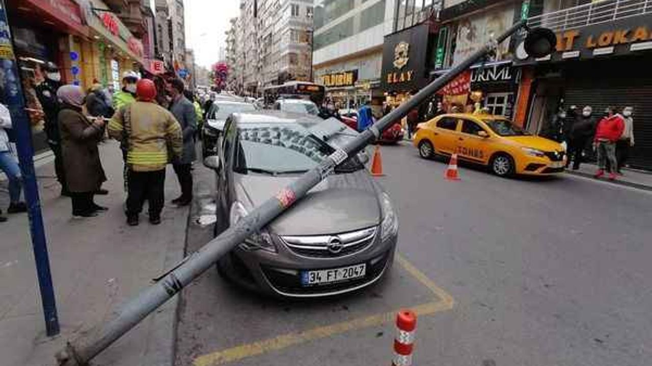 Şişli Ergenekon Caddesi üzerinde saat 16.00 sıralarında yaşanan olayda cadde üzerinde bulunan bir aydınlatma direği bir anda park halinde olan bir otomobilin üzerine devrildi.