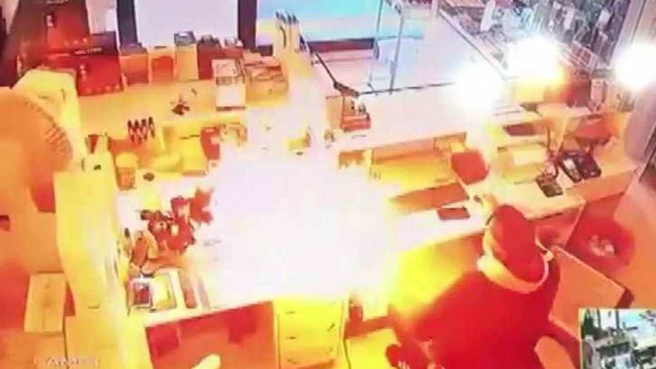 Sivas’ta bir kişinin tamir için teknik servise getirdiği cep telefonunun tamir esnasında bomba gibi patlaması, güvenlik kamerasına saniye saniye yansıdı.