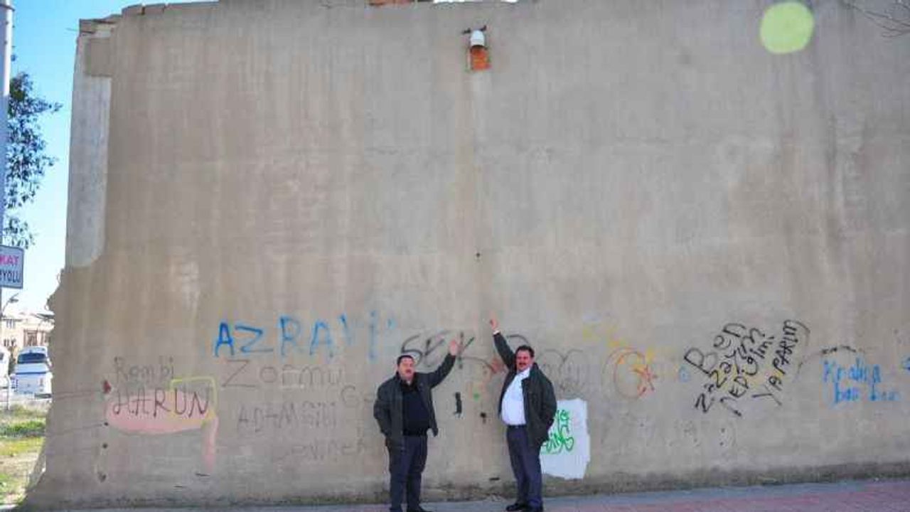 Manisa’nın Şehzadeler ilçesinde Yarhasanlar, Yeni Mahalle ve Barbaros mahallelerinin kesiştiği noktada yer alan ve yaklaşık 15 yıl önce yıkılan yağ fabrikasından geriye kalan duvar...