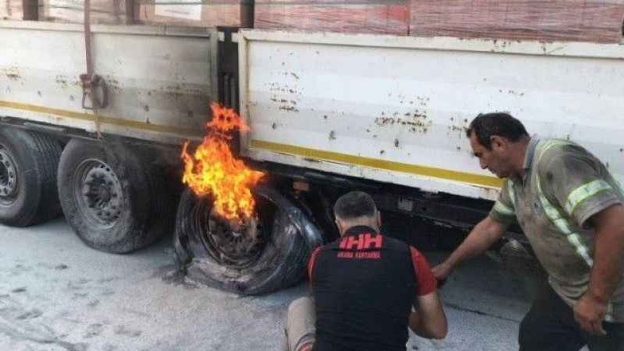 Edinilen bilgiye göre, TEM Otoyolu Sakarya geçişinde seyir halinde olan bir tırın dorse kısmında bulunan arka lastikleri alev aldı. Otoyolda ilerleyen inşaat malzemesi yüklü 34 CKJ 232 dorse plakalı tırın...