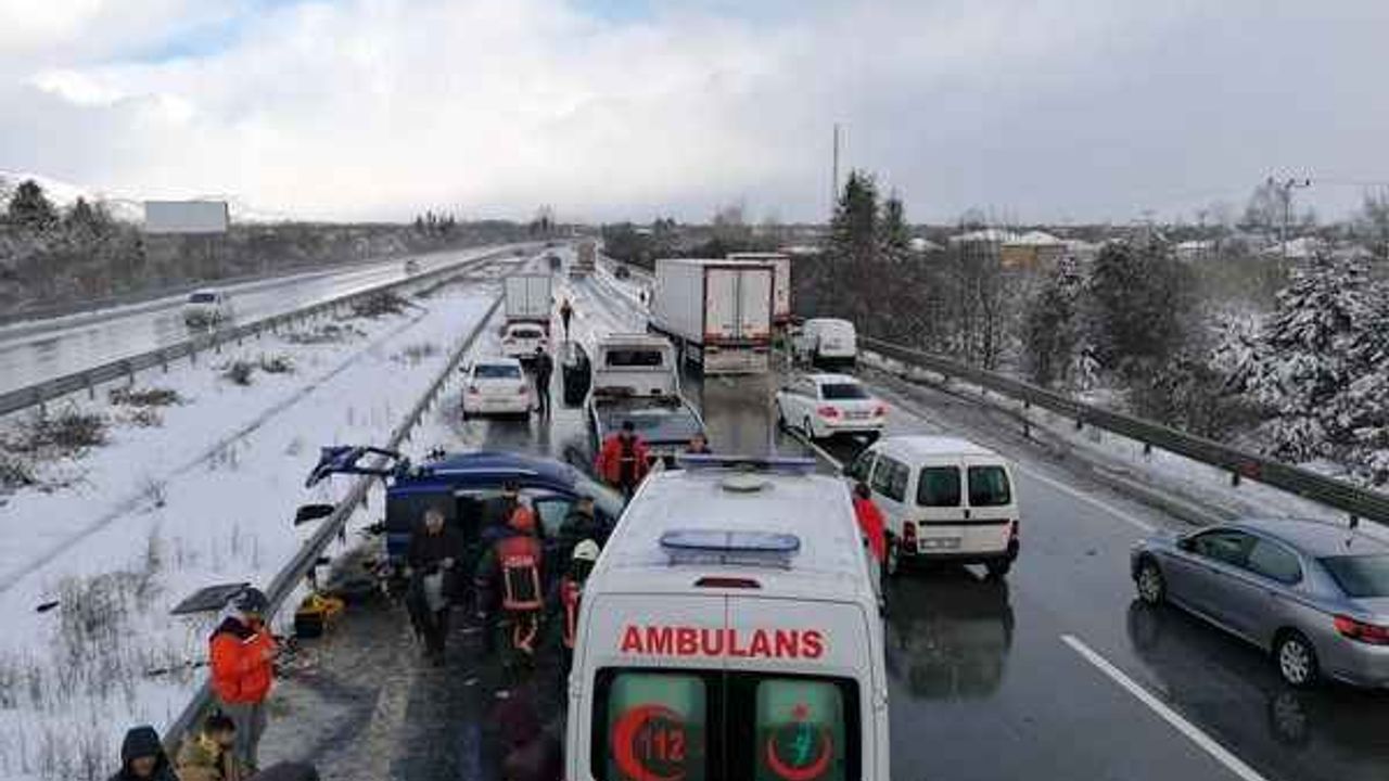 Kaza, TEM otoyolu Büyük Melen mevkisinde meydana geldi. Alınan bilgilere göre İstanbul'dan Ankara istikameti gitmekte olan Ufuk Yıldırım idaresindeki hafif ticari araç, kar yağışı nedeniyle direksiyon hakimiyetini kaybetmesi sonucu kontrolden...
