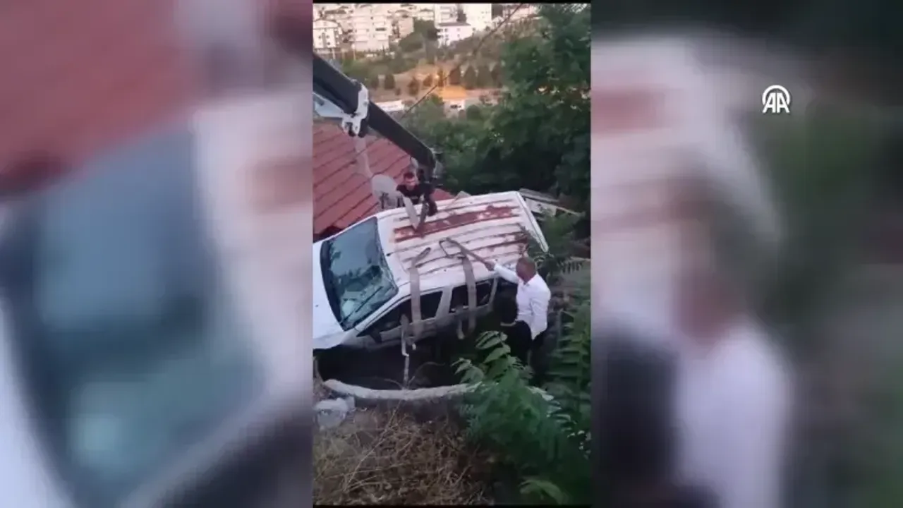Tuzla'da rampada manevra yaparken kontrolden çıkan bir hafif ticari araç, bir evin üzerine düştü.
