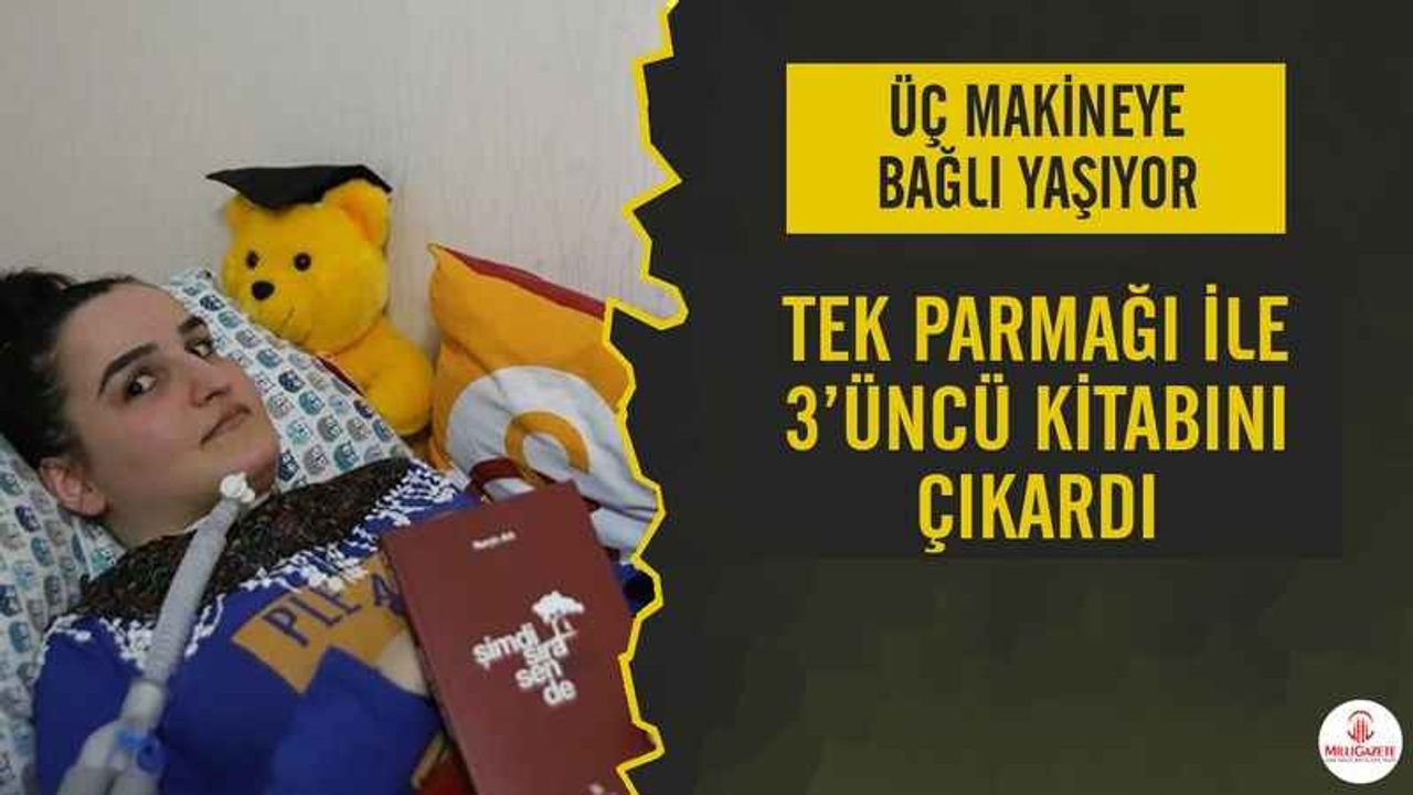 Üç makineye bağlı yaşıyor... Tek parmağı ile 3’üncü kitabını çıkardı