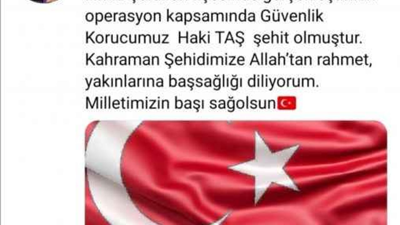 Van Valisi ve Büyükşehir Belediyem Başkan Vekili Mehmet Emin Bilmez, Çaldıran ilçesinde gerçekleştirilen operasyon sonucu 1 güvenlik korucusunun şehit olduğunu duyurdu. Vali Bilmez, acı haberi sosyal medya hesabından duyururken “16.08.2020...