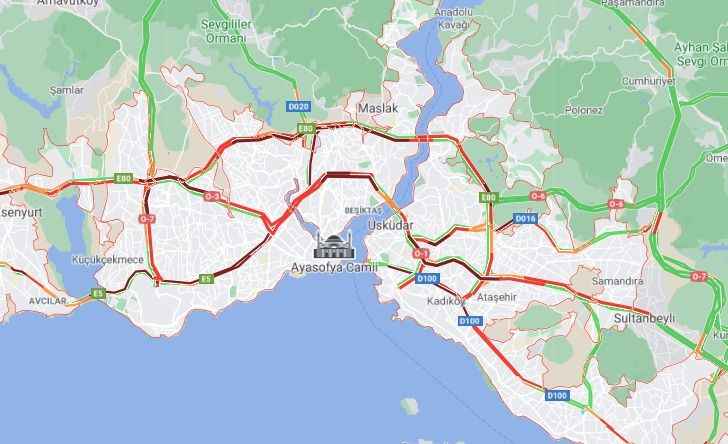 Anadolu Yakası'nda TEM Otoyolu Dudullu mevkisi, D-100 Çamlıca ve Uzunçayır mevkisi ve TEM Otoyolu'nda da ara ara trafik arttı.