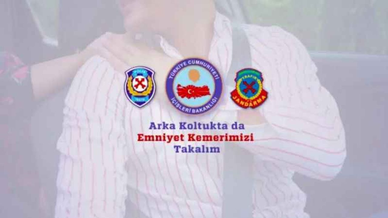 İçişleri Bakanlığı'nca, araçların arka koltuğunda oturanların emniyet kemeri takmaları için uyarıda bulunulan bir video yayınlandı. Bakanlığın sosyal paylaşım sitesi Twitter üzerinden '#FreneDeğilKuralaGüven' etiketiyle yayınladığı videoda, 'Arkamızda sevdiklerimizin olduğunu unutmayalım. Arka...