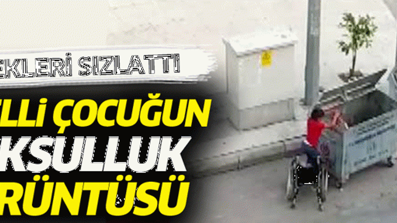 Hatay'ın İskenderun ilçesinde, engelli bir çocuğun tekerlekli sandalyesi ile çöp konteynerlerinden plastik atık topladığı görüntüler sosyal medyada paylaşıldı.