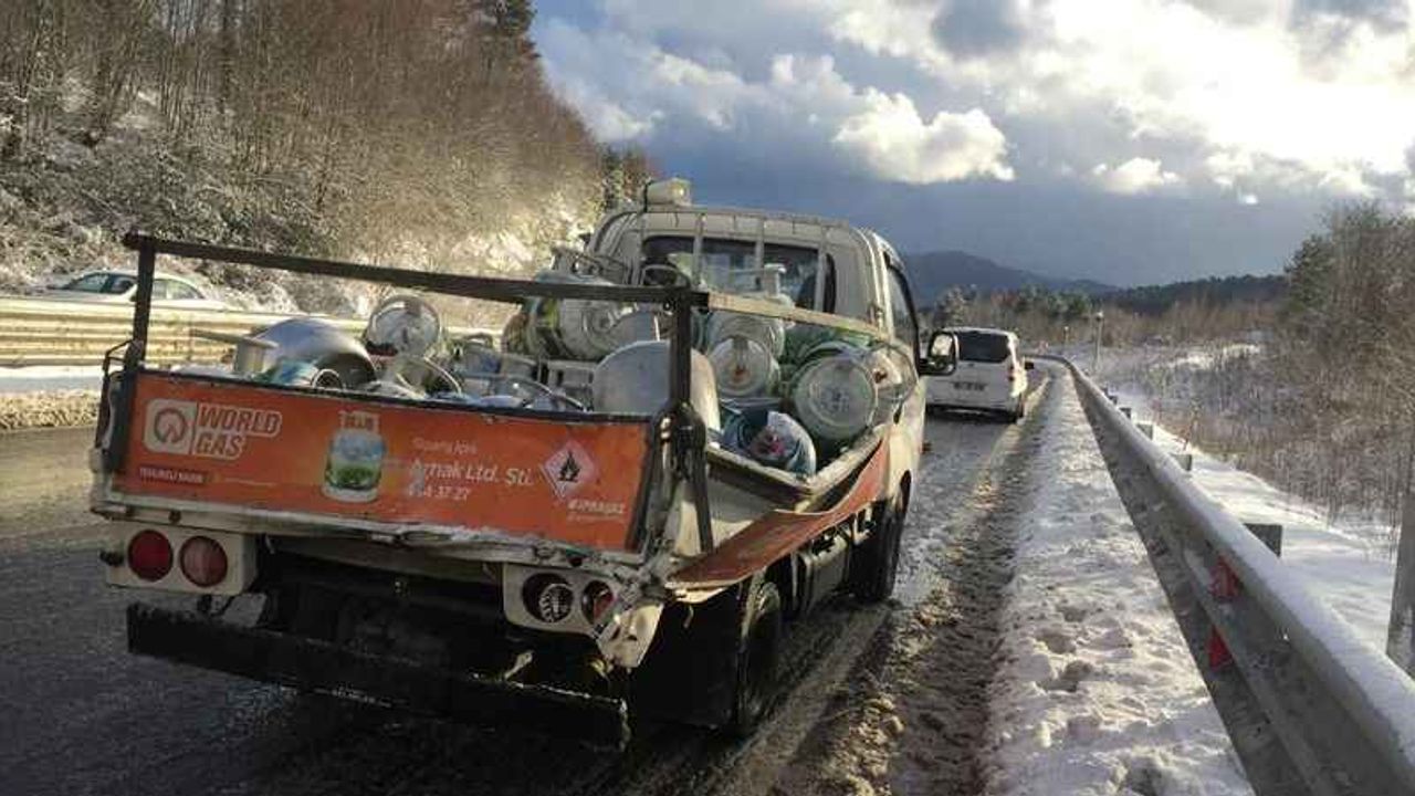 Kaza, Zonguldak-Ereğli karayolunun Kandilli beldesi Yolayrımı mevkisinde meydana geldi. İddiaya göre Lütfü Ç. idaresindeki otobüs önünde seyir eden Cihat Ç. idaresindeki tüp yüklü kamyonete çarptı. Kamyonet yan yatarken aynı istikamette...