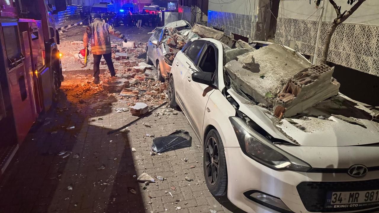 Park halinde bulunan 3 araç, üzerlerine düşen beton yığınları nedeniyle ezilerek kullanılamaz hale geldi.