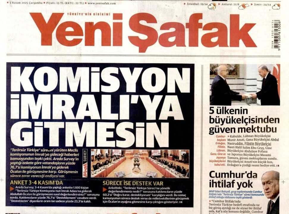 Yeni Şafak Gazetesinin, "Komisyon İmralı'ya Gitmesin" şeklindeki manşetinin ayrıntıları şöyle;