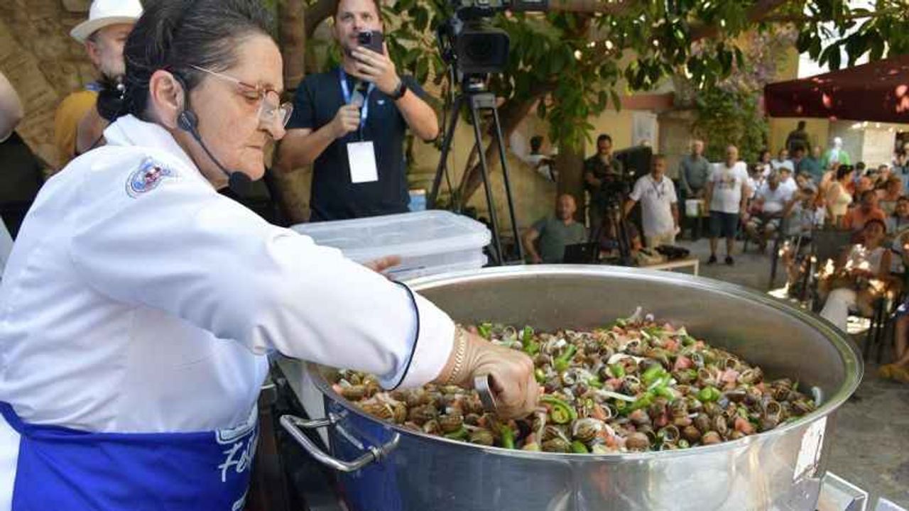 Kuşadası'nda yapılan salyangoz yemeği, sosyal medyada gündem oldu.